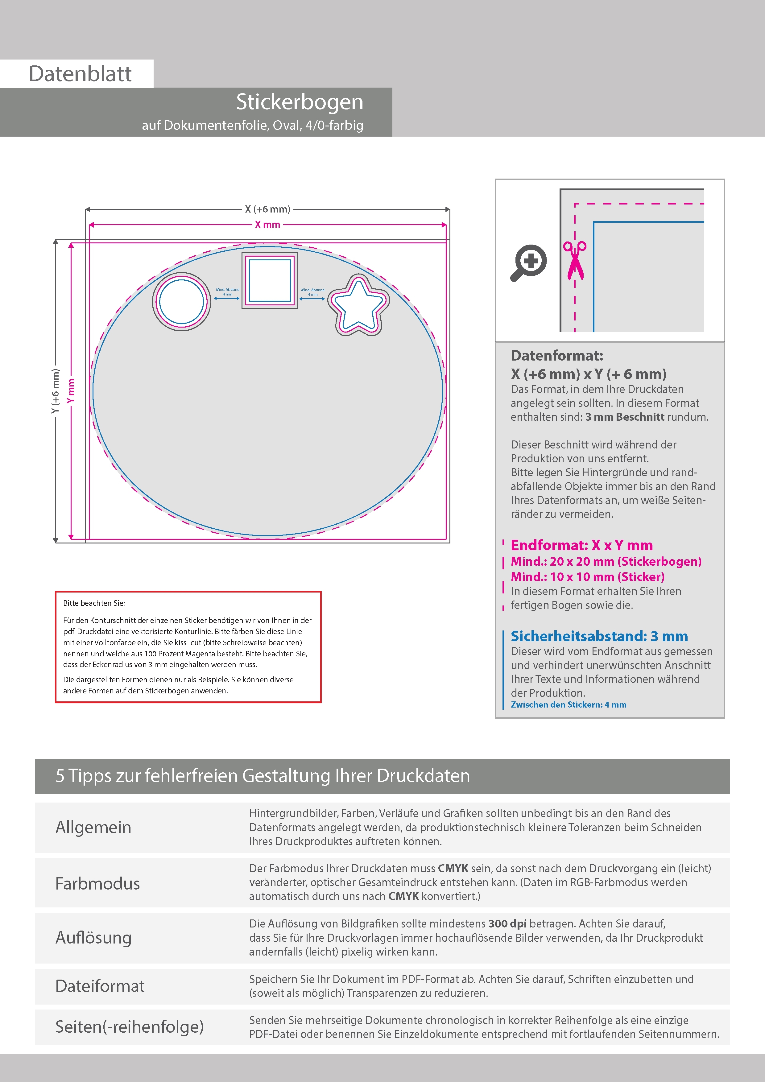 Stickerbogen auf Dokumentenfolie 4/0 farbig bedruckt oval (oval konturgeschnitten)