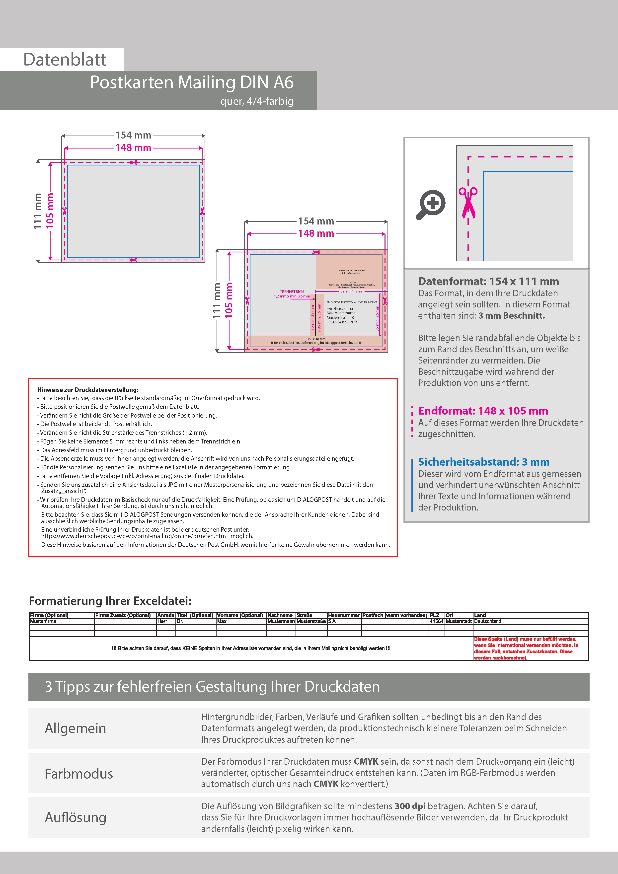 Postkarten-Mailing DIN A6 Quer (14,8 cm x 10,5 cm)