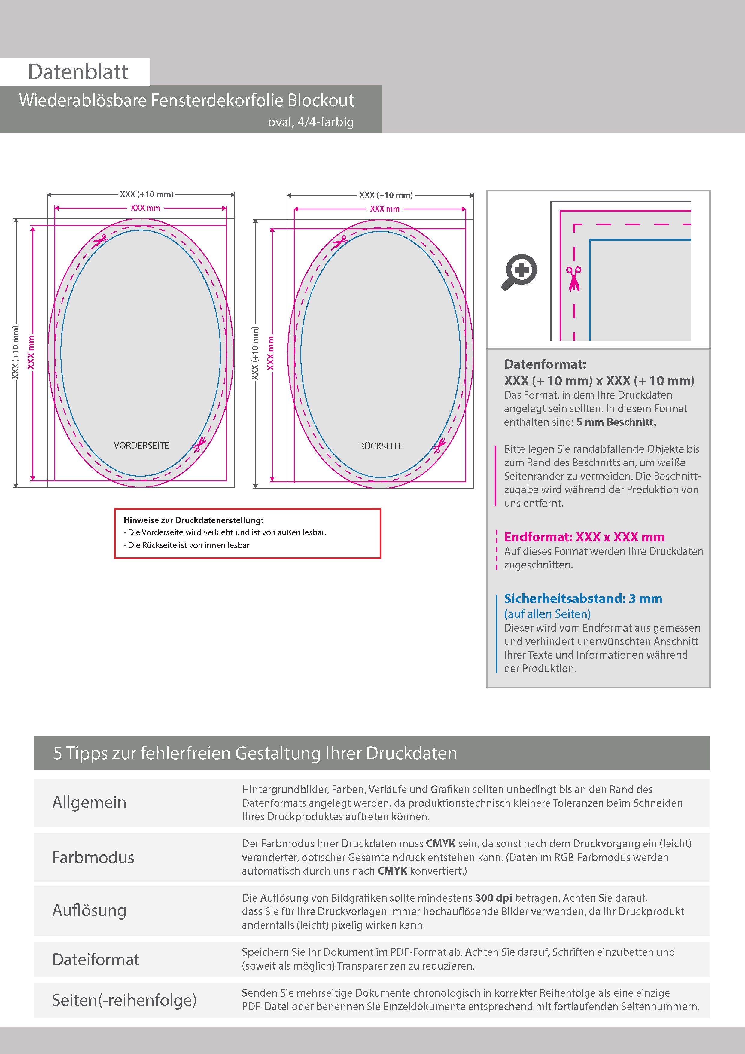 Wiederablösbare Fensterdekorfolie Blockout oval (oval konturgeschnitten), 4/4 farbig beidseitig bedruckt
