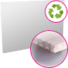 Ihnen stehen zum einen unsere Wabenplatten mit recyceltem Kern zur Verfügung. Diese weisen innen eine Wabenstruktur auf und sind oben und unten von einer weißen Polypropylen-Schicht bedeckt. Zum anderen können wir für Sie Doppelstegplatten mit Wellenstruktur im Inneren bedrucken, die einen Recyclinganteil von 50 % aufweisen. Beide Varianten sind stabil, leicht und wetterfest.